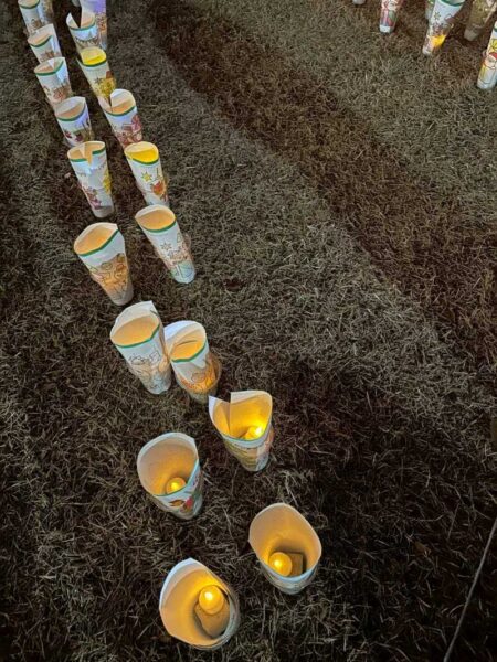 会場には、子どもたちが一生懸命描いてくれた絵をキャンドルスタンドに差し込んだ、